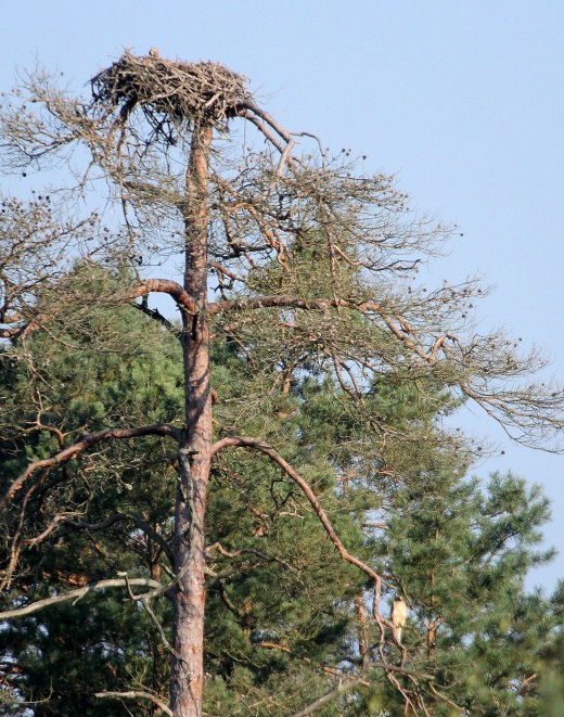 Sur une autre aire de balbuzards, un jeune est également observé couché le 1er septembre. Le 8, ce sont deux jeunes aigles bottés qui sont observés, l’un couché dans le nid, l’autre perché dans le même arbre, en dessous.