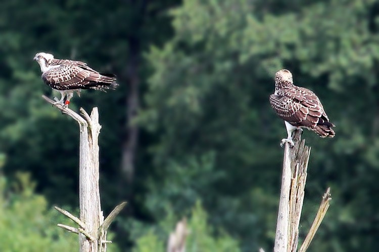 Les deux jeunes nés en 2011 sur l’Etang du Ravoir, en forêt d’Orléans, photographiés depuis l’observatoire ouvert au public.