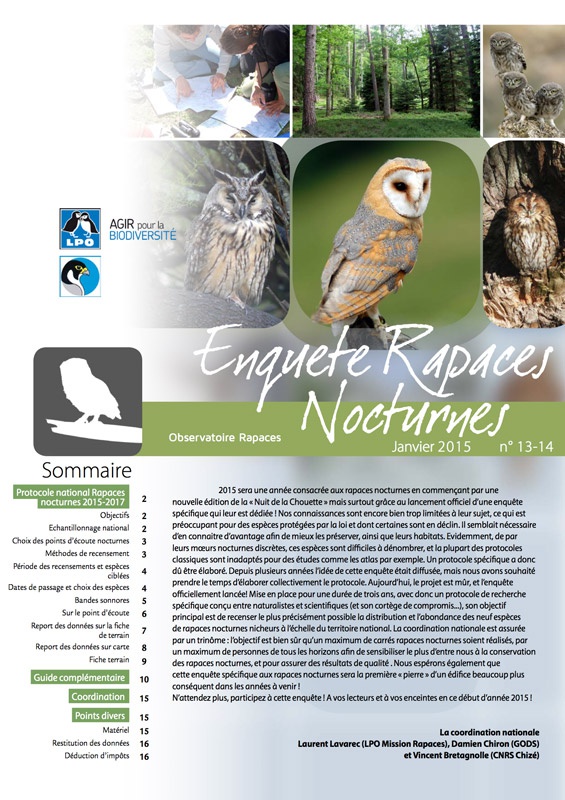 Le bulletin de l’Observatoire Rapaces de janvier 2015 est paru, il est consacré au Protocole National Rapaces Nocturnes 2015-2017.