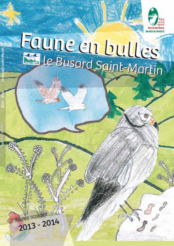 Lors de l’année scolaire précédente (2013-2014), pour le second volume d’une longue collection, les enfants ont planché sur le Busard Saint-Martin. Afin de réaliser cette bande dessinée, les élèves ont bénéficié d’une sortie sur la Corniche de Pail, Espace Naturel Sensible de la Mayenne et site Natura 2000 Forêt de Multonne et Corniche de Pail. Lors de cette sortie, les pieds dans la lande et jumelles au cou, ils ont découvert ce milieu naturel typique du massif Armoricain, lieu de vie du Busard Saint Martin.