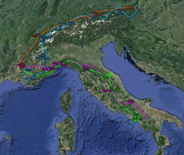 Après avoir déjà parcouru plus de 6 000 km début avril (des déplacements en Italie jusqu’à Capri, en Suisse, au Liechtenstein, au Sud Est de l’Allemagne et à l’Est de l’Autriche), cet oiseau est reparti vers le Sud Est de l’Europe: