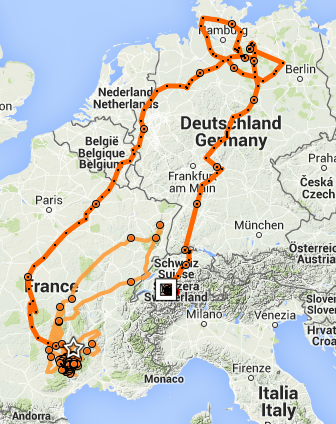 – Le 7/06, il arrive en Allemagne. En moins de deux jours, il atteint la pointe Nord du pays, où il effectue une première boucle autour d’Hambourg et une seconde boucle autour de Wittenberge.