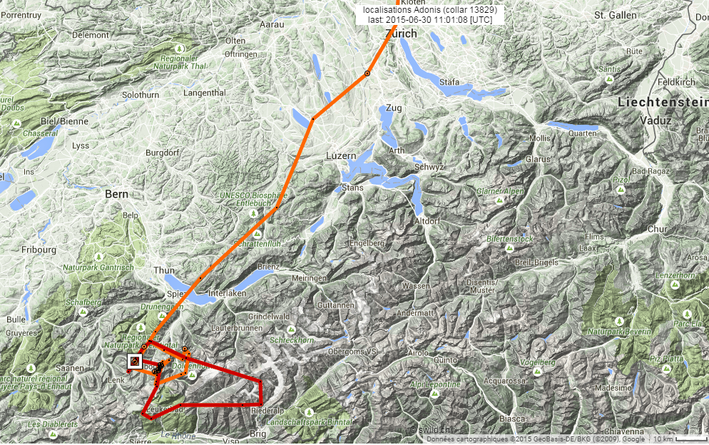 Mais cette fois, Adonis survole Zurich et atteint le Canton de Berne (Alpes suisses), le 19/06.