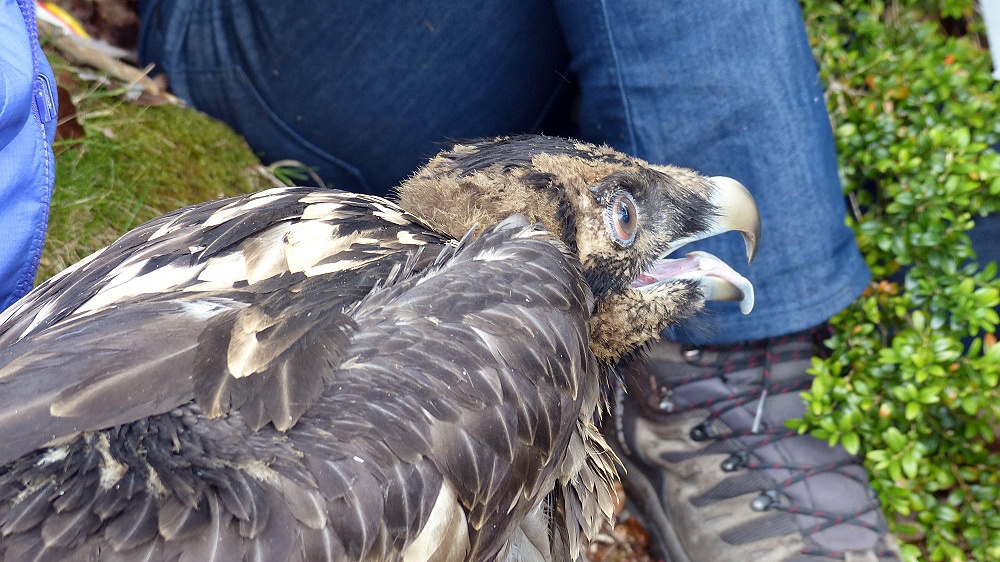 Mercredi nous avons bagué et équipé d’une balise le jeune Gypaète qui devrait prendre son envol début mai.