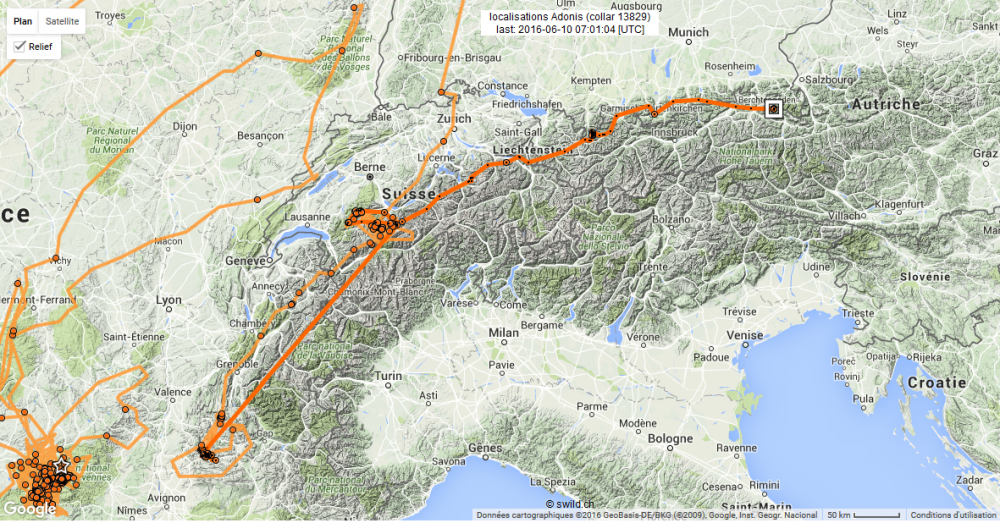 Après avoir rejoint les Alpes suisses le 23/05 dernier, il continue sa découverte de l’arc alpin et il a atteint l’Autriche le 28/05.