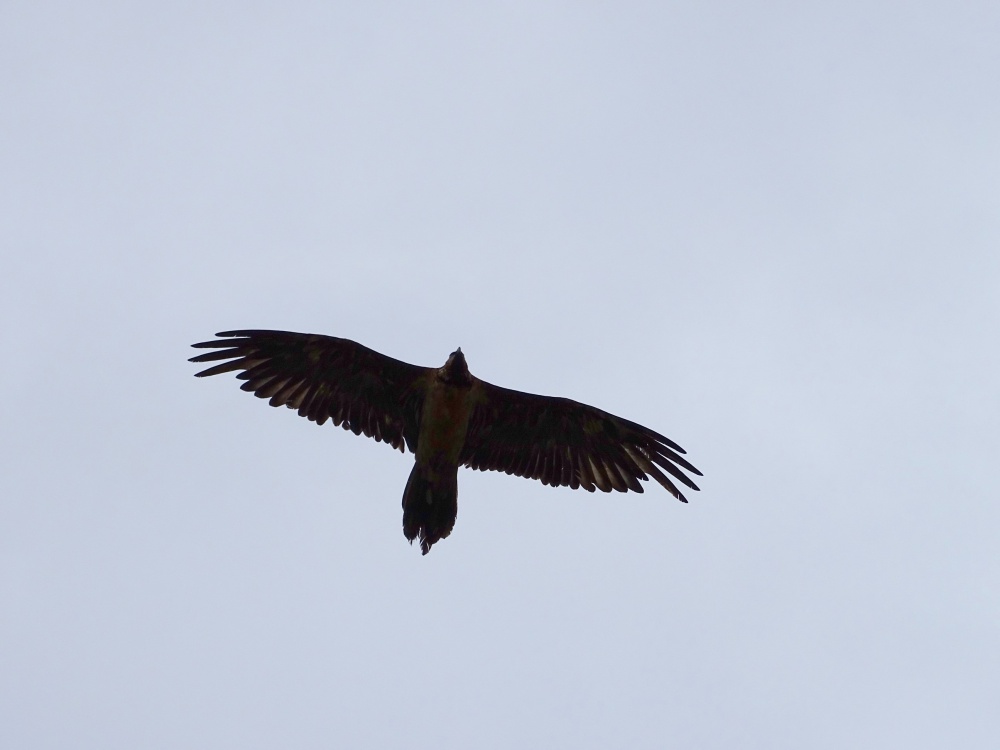 Cardabelle (Gypaète barbu de 5ème année) a pu être identifiée grâce à ses bagues (Tarse droit : rouge – Tarse gauche : argent et vert).