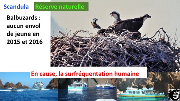 À Scandula, depuis 2010, le nombre de jeunes balbuzards à l’envol ne cesse de décroître et aucun envol n’a eu lieu en 2015 et 2016 sur les cinq couples reproducteurs qui nichent sur la côte rocheuse de la réserve naturelle.