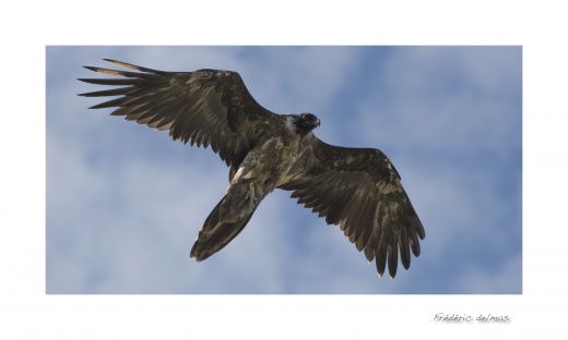 des Cévennes, est celle d’un gypaète barbu adulte : le contraste entre la couleur de ses ailes et sa queue sombres et, le reste de son corps s’intensifie ; les plumes de son torse et de son cou deviennent blanches et se teinte de ocre. On peut aisément distinguer la différence avec un jeune de l’année dont la silhouette est plus sombre et le plumage plus régulier, voir photo ci-contre de Viaduc en vol (lâcher Gypaète barbu 2017).