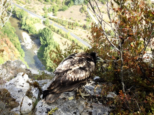 Début septembre, les deux couples sont effectivement partis avec un seul jeune. Le second a été retrouvé le 10 septembre, échoué sur les rives de la Dourbie. Le centre de soin de Millau est intervenu car, il est fréquent que les jeunes vautours, par manque d’expérience, se retrouvent en difficulté dans le creux des vallées où les conditions d’envol sont peu favorables.