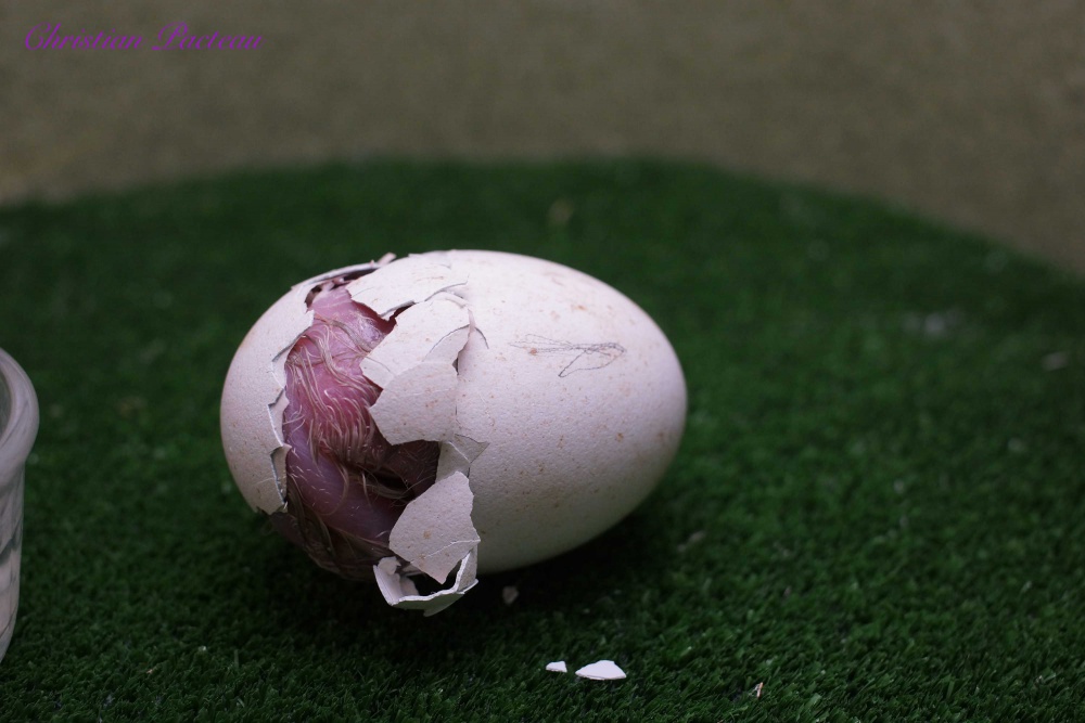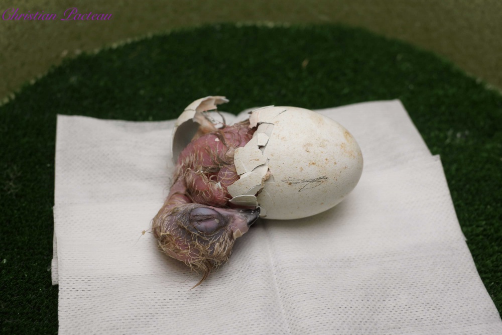 Le 21 mars 2018, on note la première naissance au centre d’élevage. Cet œuf avait été placé en incubateur artificiel au mois de février afin d’inciter le couple reproducteur à produire une seconde ponte.