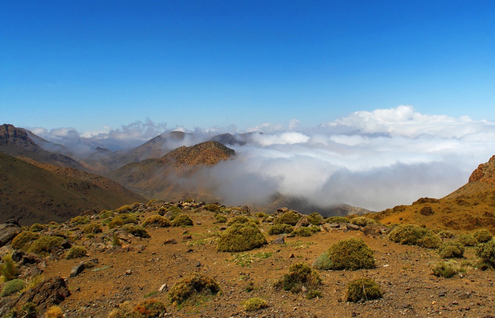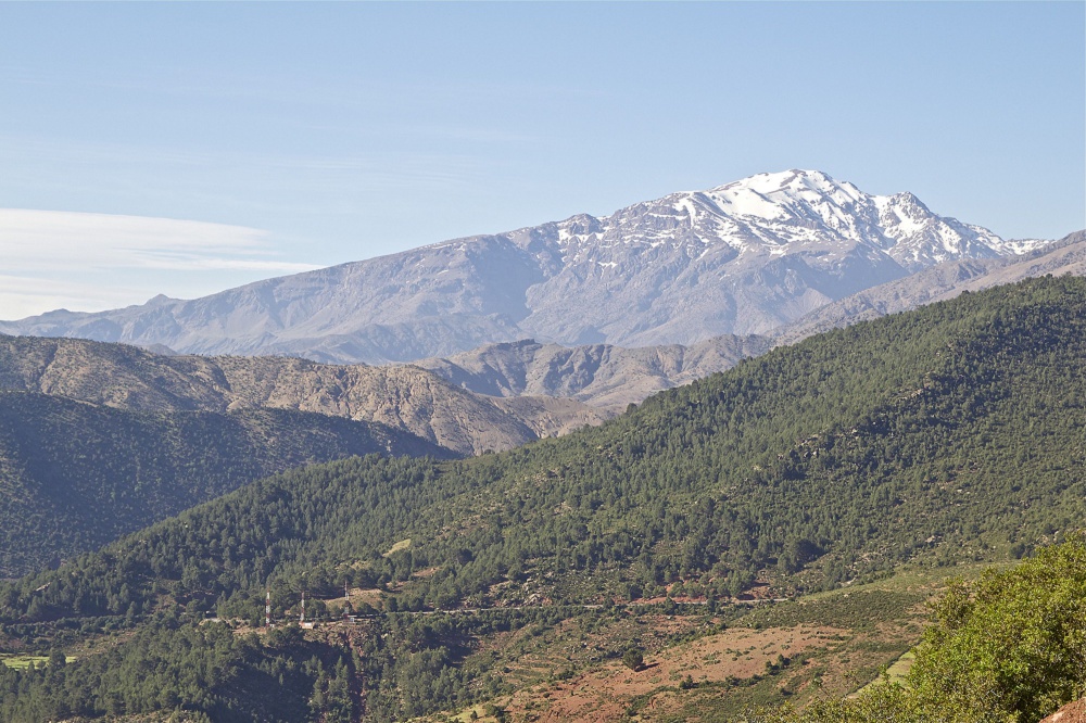 Les montagnes du Haut Atlas, la plus grande chaîne de montagnes d’Afrique du Nord, s’étendent sur une superficie d’environ 740 km et comprennent les plus hauts sommets d’Afrique du Nord, comme le Toubkal 4167m et le M’goun 4071m.