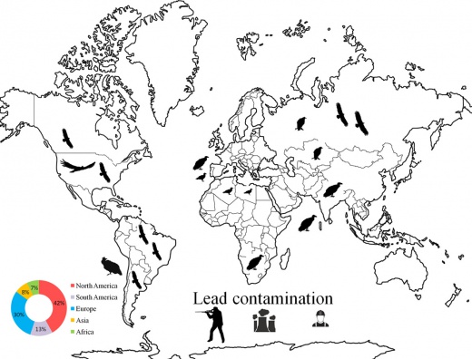Un article récemment publié dans la revue Science of the Total Environment a passé en revue 62 articles scientifiques du monde entier qui ont étudié la contamination des vautours et des condors par le plomb. Les résultats confirment que l’exposition au plomb, principalement par l’ingestion de munitions au plomb, constitue une grave menace pour de nombreuses populations de vautours.