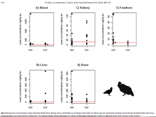 La source de contamination au plomb la plus fréquemment soupçonnée était l’ingestion de munitions au plomb, lorsque les vautours se nourrissent de charogne, ou de déchets d’animaux tués par les chasseurs. Les auteurs recommandent que d’autres recherches normalisées soient effectuées afin de confirmer ce lien, de permettre l’élaboration et la mise en œuvre d’une législation appropriée, pour éliminer cette menace pour les populations de vautours et d’autres espèces sauvages.