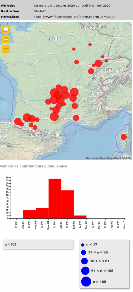 Nous remercions également tous les observateurs qui ont saisi leurs données sur les sites Visionature. La carte ci-contre donne un aperçu des données saisies en France entre le 1er et le 6 janvier 2020. A retrouver sur Faune-France. Et plus généralement, un grand merci à tous les observateurs ayant participé à ce comptage européen.