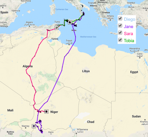 - Jane flew over Malta on October 4th and went safely to Africa. She is wintering in Niger and Nigeria.