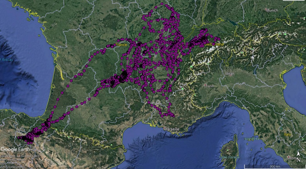 Ce printemps 2021, c’est une femelle suisse qui a décidé de poser ses valiser dans le département du Puy-de-Dôme, à plus de 300 kilomètres de son lieu de naissance. Ce sont les confrères de la station ornithologique suisse qui ont alerté la LPO France sur la base des données GPS transmises par la balise installée sur le dos de cet oiseau. Vérification faite par les collègues de la LPO Auvergne-Rhône-Alpes, cette femelle s’est bien installée à quelques 50 kilomètres au sud de Clermont-Ferrand pour s’y reproduire.