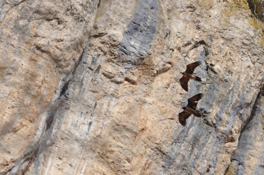 Efin, Layrou et Adonis, les deux mâles adultes fixés en Lozère sont toujours fidèles aux gorges de la Jonte.