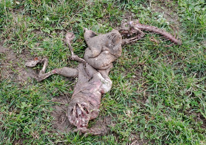 Observation inhabituelle le 13 novembre 2012 sur les hauteurs de Marvejols (Lozère)… Vers 16 heures, quelques Vautours fauves en vol semblent intéressés par « quelque chose » au sol. 2 ou 3 Corneilles sont déjà posées sur un petite forme sombre mais à 1,3 km environ et je n’identifie rien de précis même avec la longue vue.