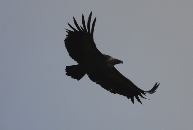 Une douzaine de vautours descendent et prennent part à un festin sans grande excitation ! Deux oiseaux restent même à distance et un troisième observe d’en haut d’un arbre. Curieux du menu de ce repas, j’attends la fin de l’après-midi – et l’envol des oiseaux – pour aller constater l’affaire et je découvre… la dépouille d’un Renard, la peau retournée comme un doigt de gant ! Sûrement un animal qui a connu une fin tragique comme des milliers d’autres à cette époque de l’année…