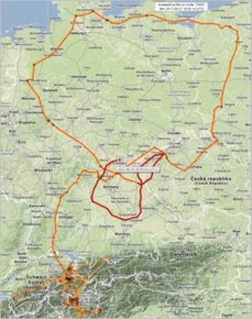 The young female Bernd (Calfeisen 2012) decided to go on a trip through Middle Europe. She started in Switzerland mid of May, went to the North-East, crossing Bavaria and Czech Republic. Then she took a route into Poland up to the Baltic Sea. Then she decided to go West. Cold and rainy weather conditions forced her to stay for some days near Lübeck in the North of Germany, before she turned to the South heading already for the Alps in the first days of June. But then she changed the direction and went to the North-East again. Around the 8th of June the telemetry team received a signal suspecting the death of the bird. But fortunately local ornithologists found only the satellite tag in the area of Kulmbach (Germany) and Bernd was already gone to continue her journey. Following the telemetry tracks Bernd had already done a journey of more than 3000 km in 3 weeks! After losing the satellite tag we received only a few observations of Bernd in Germany, hoping that she would find her way back into the Alps herself. But on the 2nd of July we got the news that the bird was sitting in a stone quarry in Saxony (Germany) close to the Polish border.