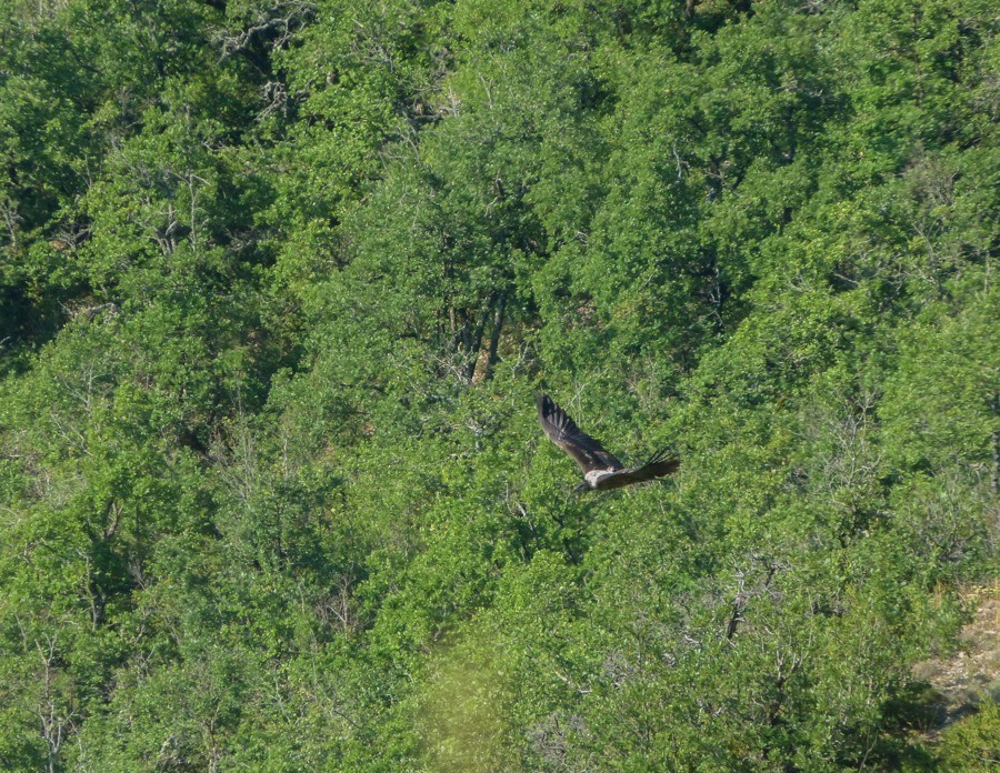Depuis qu’ils ont rejoint leurs voisins proches, les vautours fauves, dans l’immensité du ciel bleu du Causse noir, Layrou et Dourbie passent la plupart de leur temps à perfectionner leurs techniques de vol.