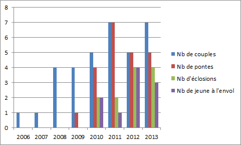 – pour la deuxième année consécutive, 1 femelle seule a pondu et couvé pendant au moins trois semaines.
