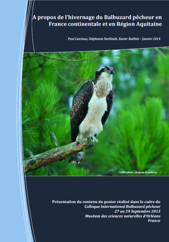 Dans le cadre du Plan National d’Actions du Balbuzard pêcheur, un formulaire d’enquête sur l’hivernage de l’espèce a été diffusé auprès de naturalistes et structures qui centralisent des données, afin de dynamiser les remontées d’informations et/ou les prospections. La compilation assurée par Paul Lesclaux, et présentée lors du colloque international à Orléans, révèle qu’une vingtaine d’oiseaux hivernent dans 13 départements situés sur la côte méditerranéenne, le long de la chaîne pyrénéenne et la façade atlantique. L’ensemble des données détaillées sont accessibles en annexe et une synthèse nationale est proposée au début du document. Ce travail cible ensuite la région Aquitaine où la population hivernante est suivie depuis plusieurs années.