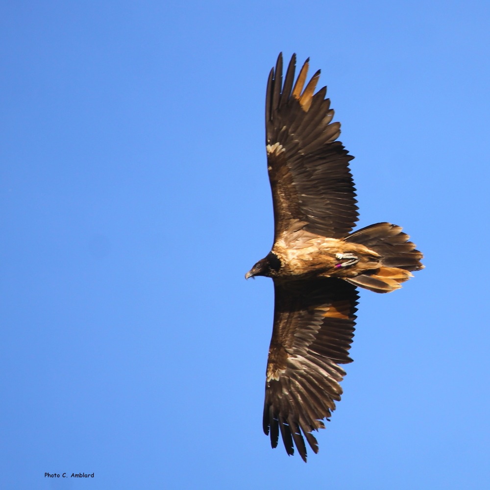 L’apparition de 10 vautours fauve se fait aux alentours de 17h45, suivis 10 à 15 minutes plus tard par un Gypaète barbu. Celui-ci survole l’observateur de très près pendant plusieurs minutes, qui l’identifie grâce à la bague (JZ).