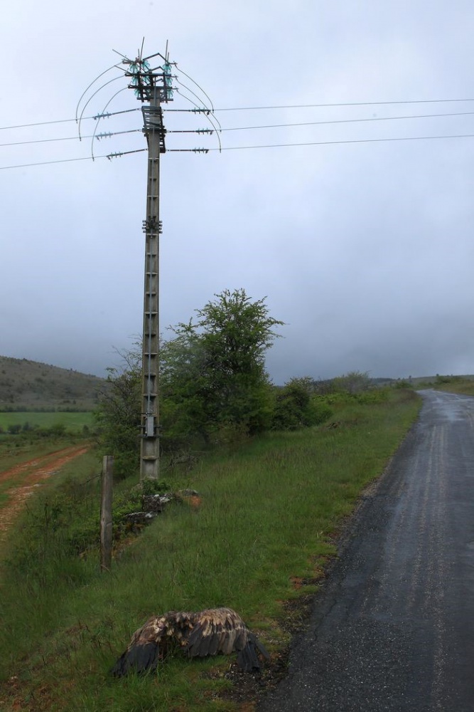 Bien que la LPO Grands Causses œuvre pour l’aménagement des lignes électriques afin de limiter les risques de collision et d’électrocution, un jeune Vautour fauve a été retrouvé mort (photo ci-contre ©Rémi Destre), lundi 19 mai, sous une ligne à haute tension (non équipée) proche de Nivelier (12).